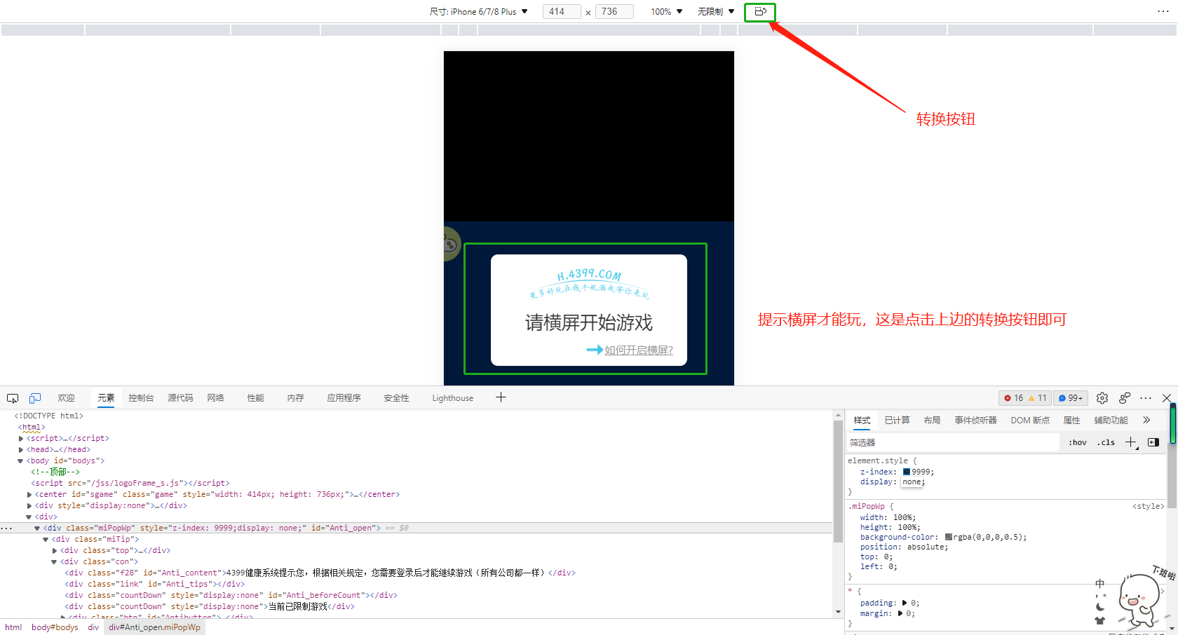第6步骤完成后会提示需要横屏才能玩,这时需要点击旋转屏幕即可 (没有提示的滤过此步骤)